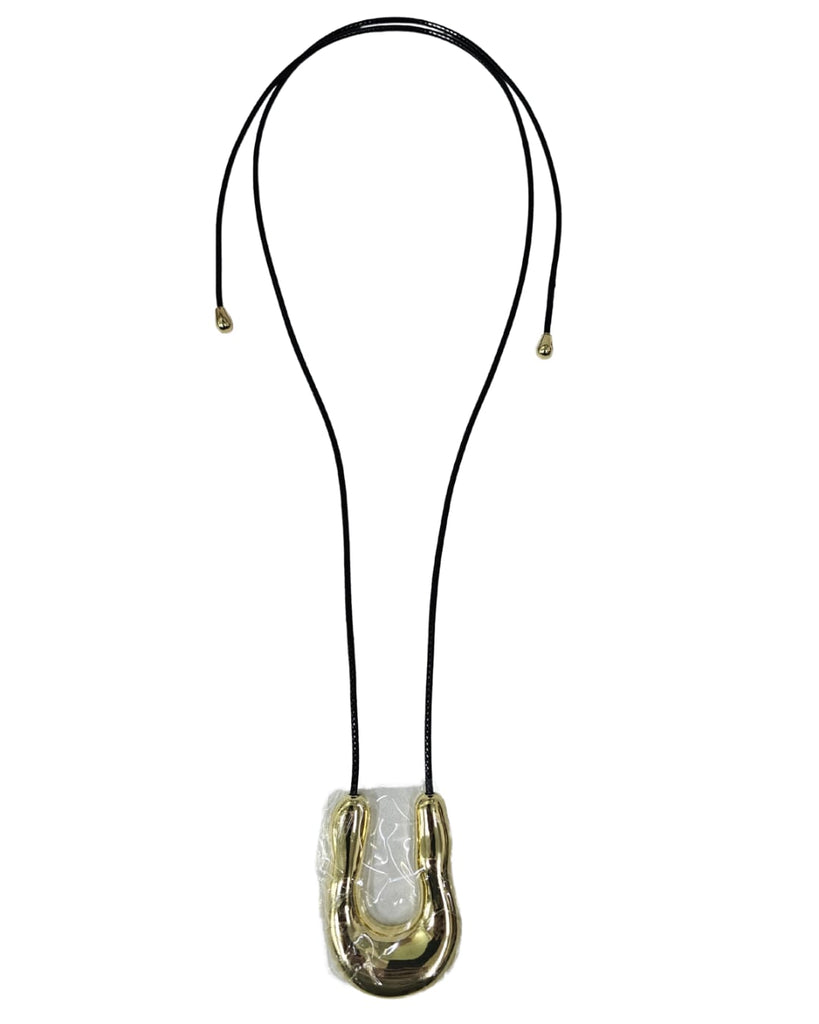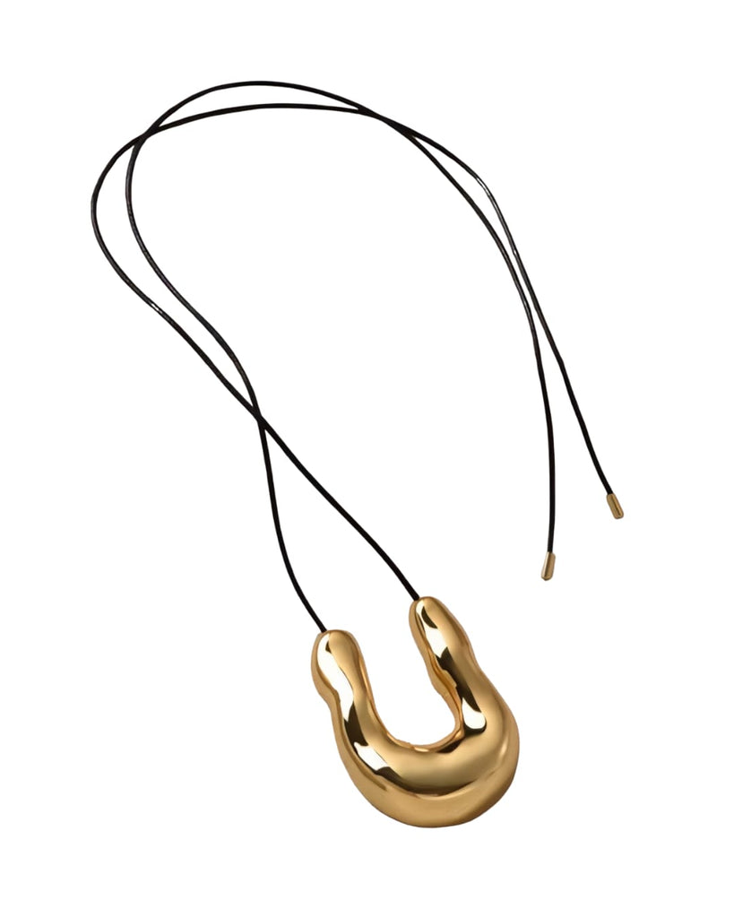 Elevate your style with this U-shaped long necklace in gold, inspired by the fluid elegance of organic forms. Its adjustable string offers versatile wear, allowing you to customize the length to complement any neckline effortlessly. Crafted to add a touch of refined sophistication, this necklace seamlessly blends natural inspiration with modern design.