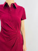 Effortless elegance meets thoughtful design in this short-sleeve shirt dress. The button-front silhouette features strategic gathering at the lower waist for a flattering fit, while side seam pockets and a concealed side zipper add practical sophistication. Fully lined for comfort and confidence, this versatile piece transitions seamlessly from office to evening.