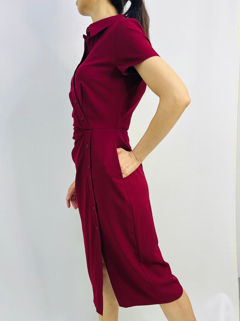 Ancora Short Sleeve Dress in Maroon