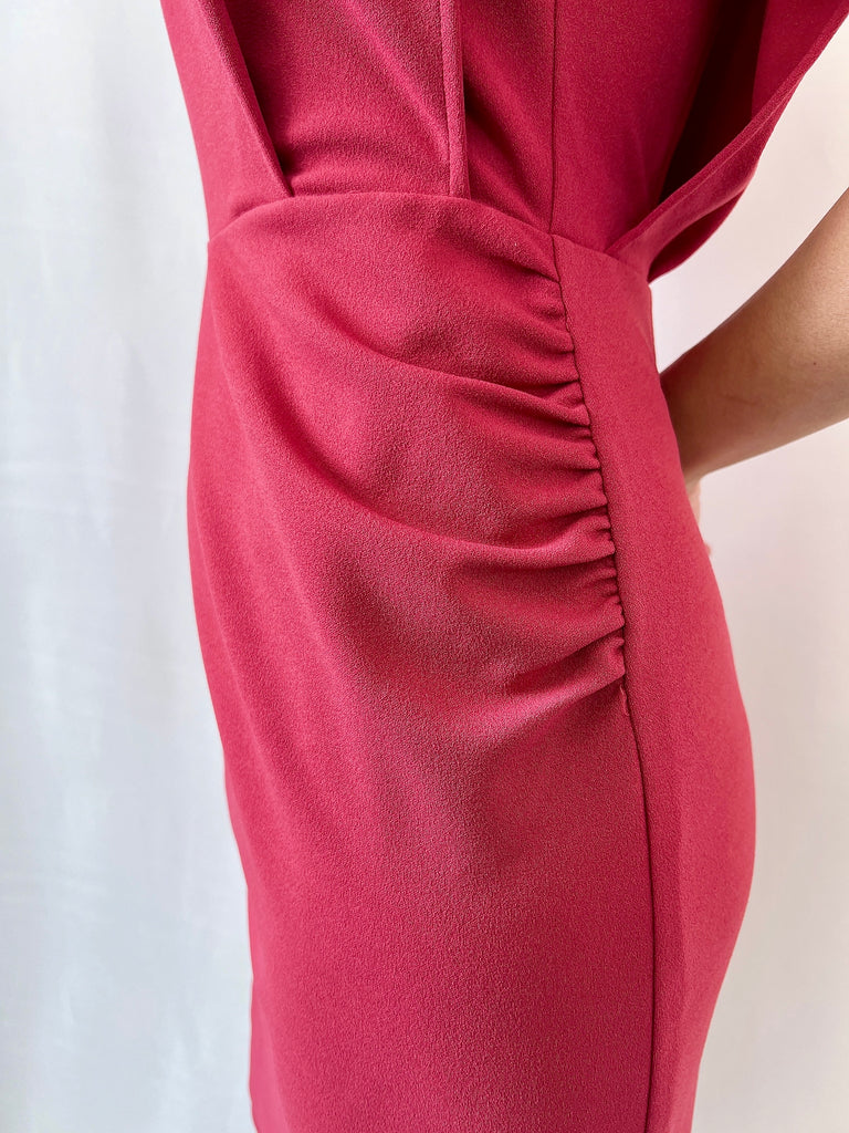 Introducing our Jewel Dress in Rose - a sleeveless dress crafted from high-quality polyester/nylon, and spandex. The cut n sew waistline creates a flattering silhouette, while the gathers at the side seam provide discreet coverage for any food bumps. Elevate your wardrobe with this elegant and stylish piece.