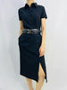 Effortless elegance meets thoughtful design in this short-sleeve shirt dress. The button-front silhouette features strategic gathering at the lower waist for a flattering fit, while side seam pockets and a concealed side zipper add practical sophistication. Fully lined for comfort and confidence, this versatile piece transitions seamlessly from office to evening.