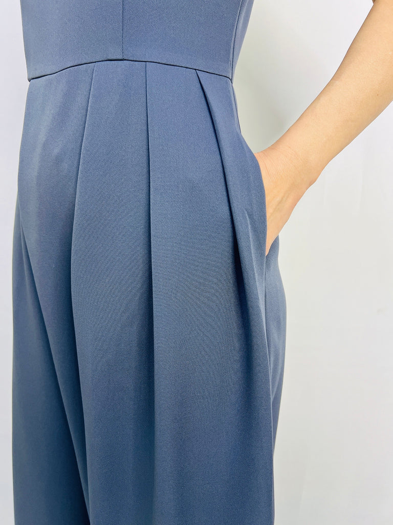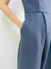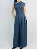The Huston Jumper features a sophisticated asymmetric collar and sleek sleeveless design. Its faux wrap detail at the front waist elegantly conceals and flatters the silhouette, enhanced by subtle pleating that hides the food bump with ease. This refined jumper blends modern style with comfort, making it a versatile choice for polished, confident dressing.
