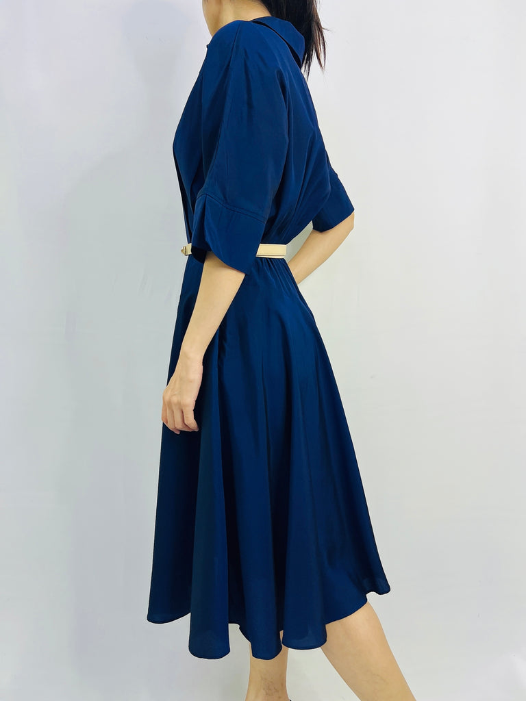 The Noel Shirtdress combines timeless tailoring with everyday comfort. Crafted in a flattering fit-and-flare silhouette, this piece features practical 3/4 sleeves with fold-up cuffs for versatile styling. An elasticated back waist ensures effortless wear, while side seam pockets add functionality. Half-lined construction keeps the design refined without excess bulk. Sophisticated enough for the office, relaxed enough for weekend wear.