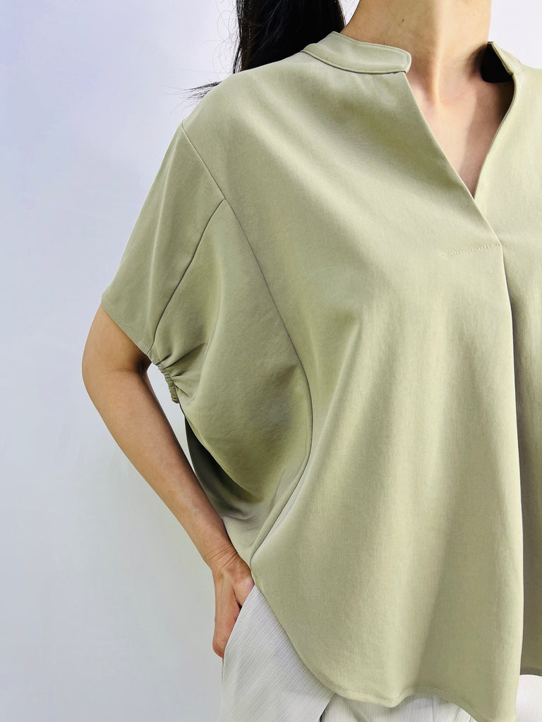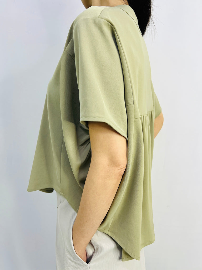 The Clarice Top combines understated sophistication with thoughtful construction. Its mandarin collar and flared silhouette create an elegant drape, while a front box pleat adds architectural interest. Carefully placed gathers at the back yoke ensure unrestricted movement, making this piece as comfortable as it is refined—ideal for both professional and elevated casual occasions.